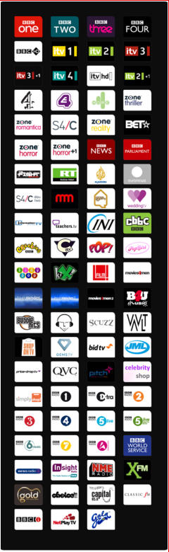 Freesat Provides:•Upto 200 FREE Digital TV Channels•Free High Definition TV Channels•200 Free Digital TV Channels By End of 2010•No Monthly Freesat Subscription or Charges•BBC iPlayer On Your TV (2009/10)•Free Direct Recording Of Your Favourite Television Shows (Freesat+ PVR Required)