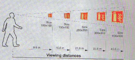 For a sign 100mm x 100mm the maximum viewing distance is 9.6m For a sign 150mm x 150mm the maximum viewing distance is 15.6m For a sign 200mm x 200mm the maximum viewing distance is 21.6m For a sign 300mm x 300mm the maximum viewing distance is 33.6m For a sign 400mm x 400mm the maximum viewing distance is 45.6m